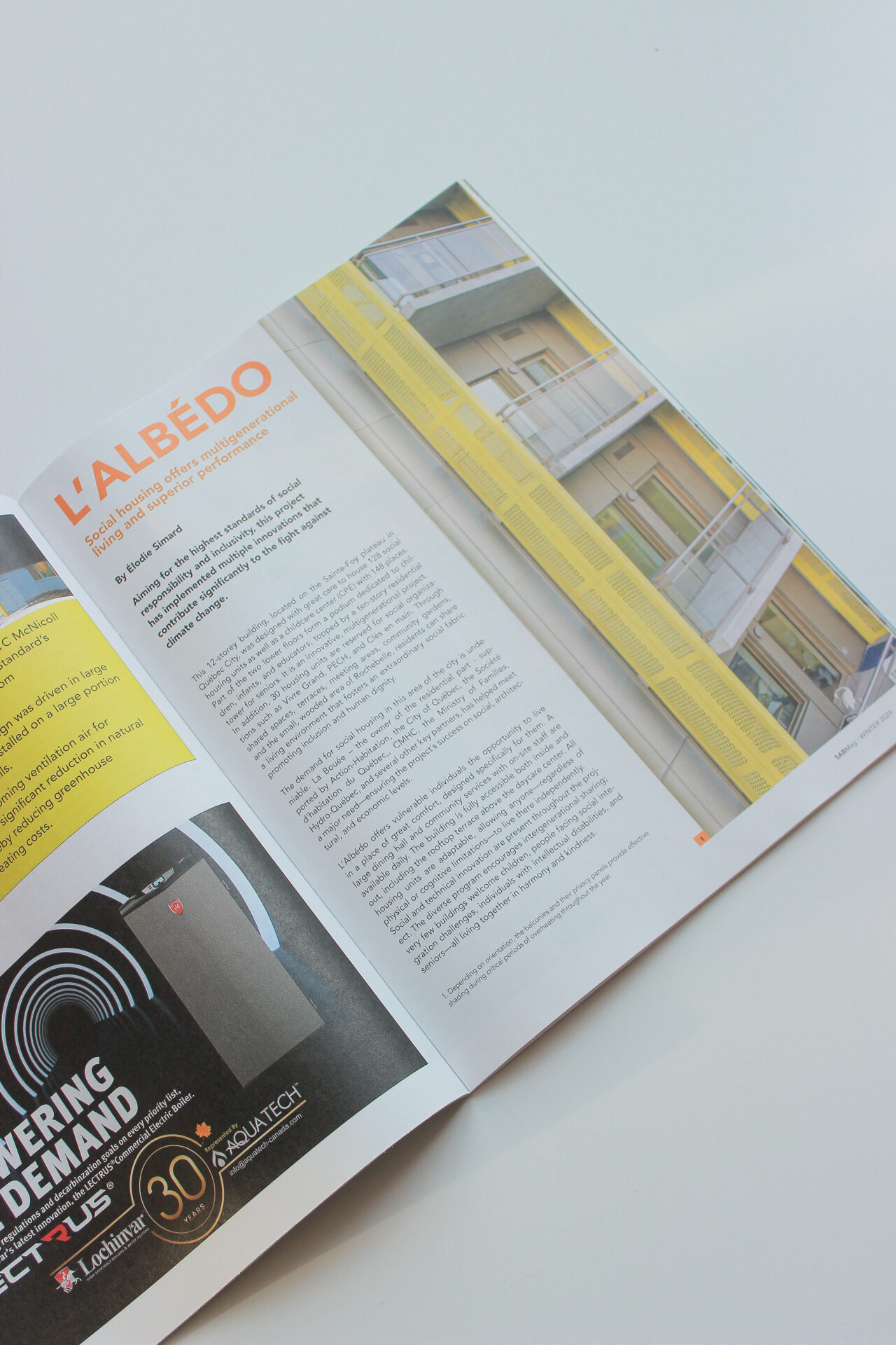 Le projet L’Albédo, inauguré en 2024 au cœur de Sainte-Foy à Québec, fait l’objet d’une parution dans le magazine SabMag, soulignant son caractère exemplaire tant sur le plan social qu’environnemental. Cette reconnaissance met en lumière un bâtiment d’exception qui redéfinit les standards du logement social contemporain.