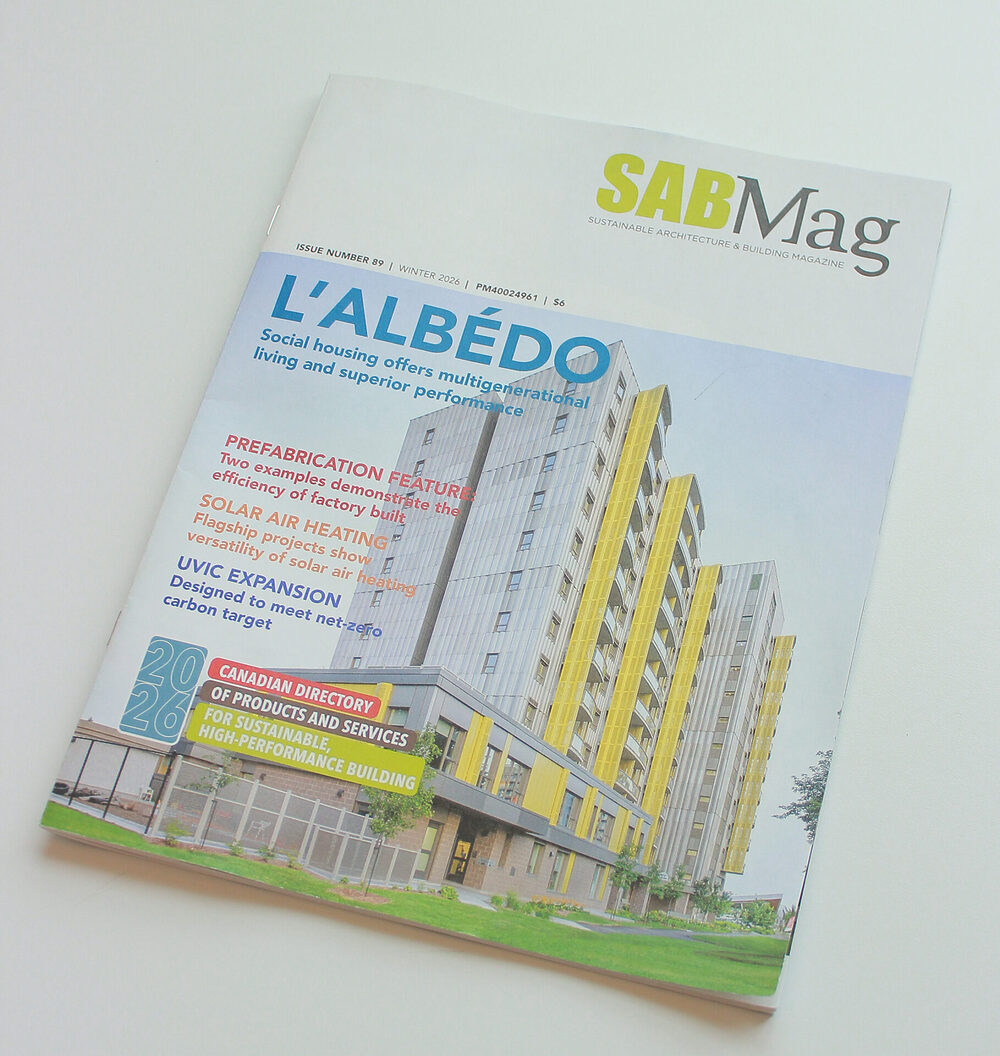 Le projet L’Albédo, inauguré en 2024 au cœur de Sainte-Foy à Québec, fait l’objet d’une parution dans le magazine SabMag, soulignant son caractère exemplaire tant sur le plan social qu’environnemental.